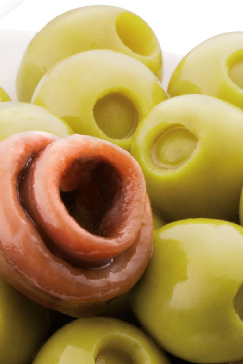 For å lage ansjos fylte oliven, åpnes oliven forsiktig og fylles med en blanding av ansjos, olje og eventuelt andre krydder og urter for å gi ekstra smak. Deretter blir de igjen forsiktig satt sammen og lagt i en marinade av olivenolje og andre krydder og urter.